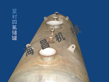 緊襯四氟是相對于我國目前大量采用的松襯工藝而言的,所謂松襯就是襯里四氟板與鋼體之間完全脫離,是兩個相對獨立的部分,在四氟板受到罐內液體壓力時,四氟板就會拉伸后與鋼體靠住,從而靠鋼體承受液體壓力。松襯在大型設備時必須要分段,加法蘭聯接,這樣設備將會增加多個法蘭,產生多個密封面,由于設備大而法蘭的平整度就會大大降低,因此在溫度變化時,聯接法蘭就會變形,聯接法蘭的螺栓就會受力不同,從而導致螺栓松動,出現泄露,這樣就必須更換墊片,重新聯接。隨著時間的推移,每次更換墊片的周期會越來越短,這對大型儲罐將是致命的。其次隨著罐內液位的變化,四氟板就不斷的鼓起和靠近罐體,四氟板和焊縫不斷壓縮和拉伸,這樣就會使四氟板出現破裂,罐內的腐蝕性液體就會流入鋼體內,很快鋼體就腐蝕穿孔,造成嚴重的泄露事故。第三,由于是松襯,四氟板與鋼體之間會有較大距離,這樣就會導致電火花檢測無法將四氟板上的缺陷檢出,而當罐內儲滿腐蝕性液體時,四氟板就會出現針孔泄露,繼而造成鋼體的腐蝕,反過來又會影響內襯的四氟板,使得針孔擴大,這樣就產生嚴重的泄露事故??傊梢r工藝有其固有的工藝缺陷,而這些缺陷將會對大型的襯里設備產生嚴重的后果,甚至出現重大事故。因此國外早在上世紀八十年代就采用緊襯工藝取代松襯,而使大型襯四氟設備進入了一個穩定可靠和長期安全使用的時代。